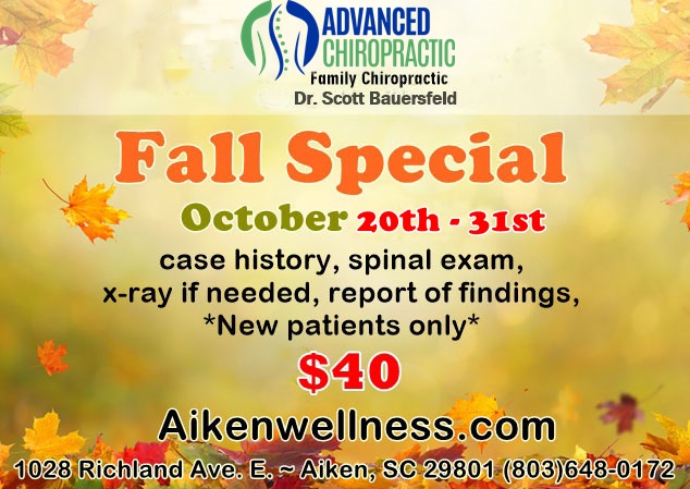 At Advanced Chiropractic we practice common sense chiropractic utilizing hands on, proven techniques. Whether your headaches, back pain, neck pain or extremity pain is caused from a car accident, horse fall, repetitive strain, the aging process, heredity, or sports injury, Doctor Scott Bauersfeld offers the best in Chiropractic care. Our mission is to offer the people in the Aiken area a better health and a better way of life by practicing the true principles of Chiropractic care.We do this by providing fast, effective, and affordable care.
